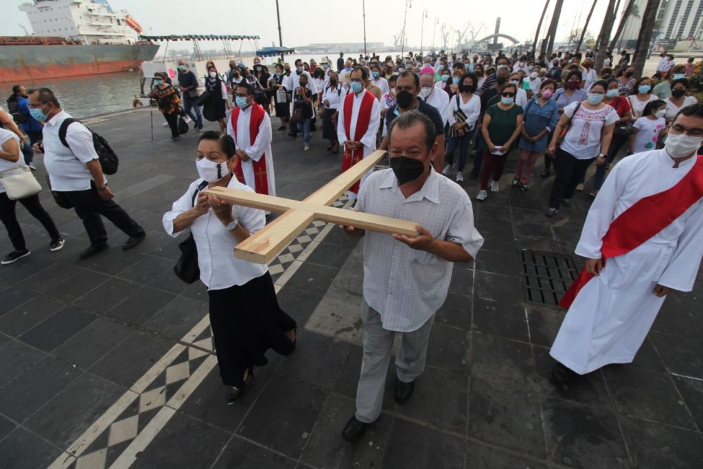 Veracruz, Ver. Después de dos años, la iglesia católica retomó la celebración del viacrucis de manera presencial, en el marco de este viernes santo.