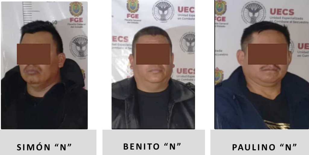 La pareja reportó el ilícito ante personal de la UECS, quienes instrumentaron un operativo y capturaron a los tres policías Benito “N”, Paulino “N” y Simón “N”.