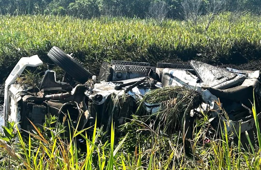 La investigación indica que, al parecer se desprendió el eje trasero mientras iba en circulación, y el operador perdió el control, saliéndose del camino, para finalmente caer al pantano y allí se hundió, en tanto el chofer murió al quedar prensado en la cabina de la unidad.