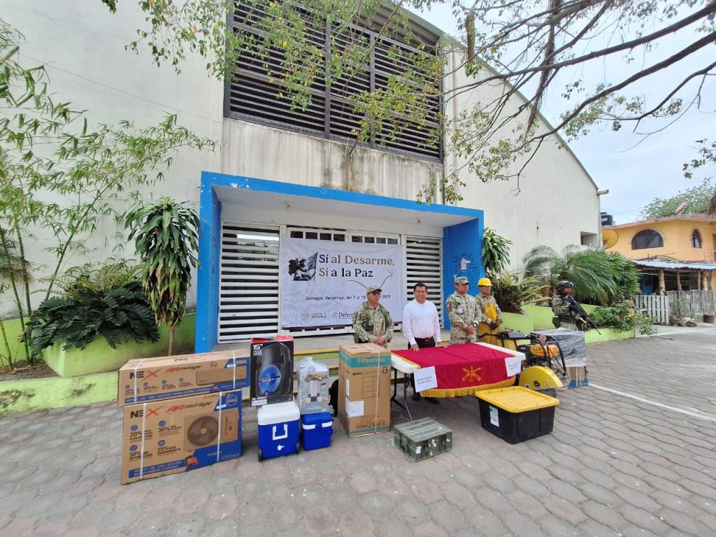 Boca del Río, Ver, 07 de Abril de 2025.- La Secretaría de la Defensa Nacional en coordinación con autoridades municipales iniciaron este lunes la campaña canje de armas “SI AL DESARME, SI A LA PAZ”, en el Municipio de Jamapa.