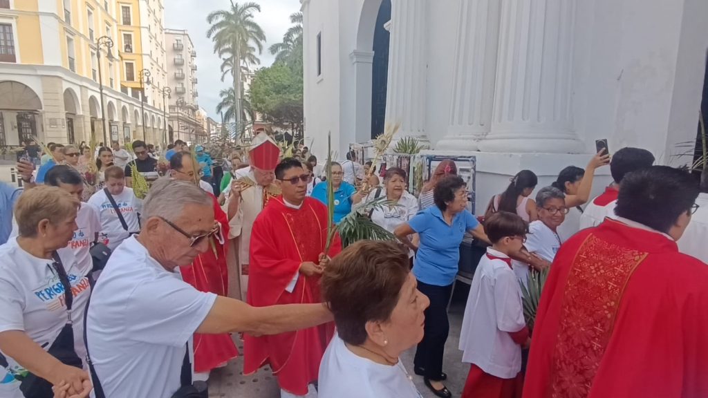 El trayecto continuó por la calle Independencia, donde decenas de familias, portaron ramos de palma, olivo y flores, hasta llegar a la Catedral de Veracruz, creando una atmósfera de recogimiento y esperanza.