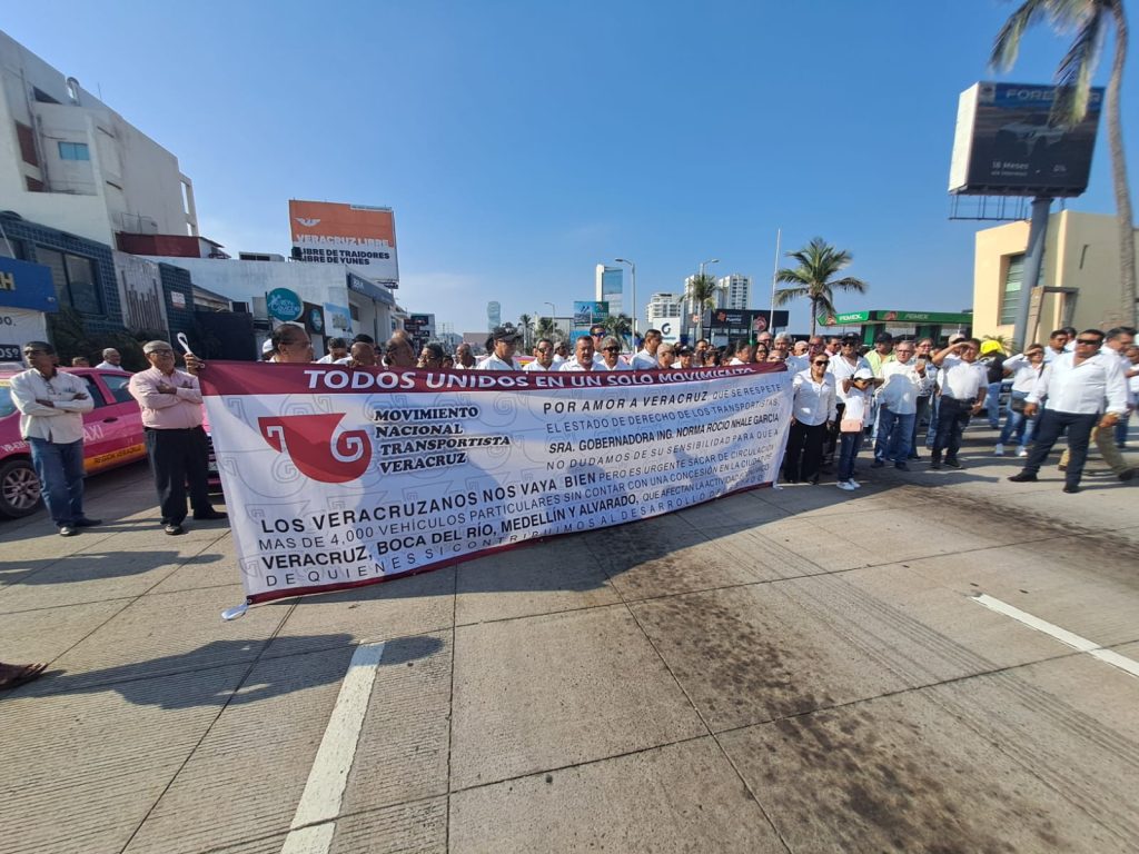 Taxistas de la zona conurbada Veracruz-Boca del Río se manifestaron la mañana de este lunes en la avenida Ruiz Cortines en Boca del Río para exigir a la gobernadora Rocío Nahle que frene la operatividad de unidades que prestan servicio de transporte público a través de aplicaciones así como la circulación de mototaxis en algunos puntos de la conurbación.