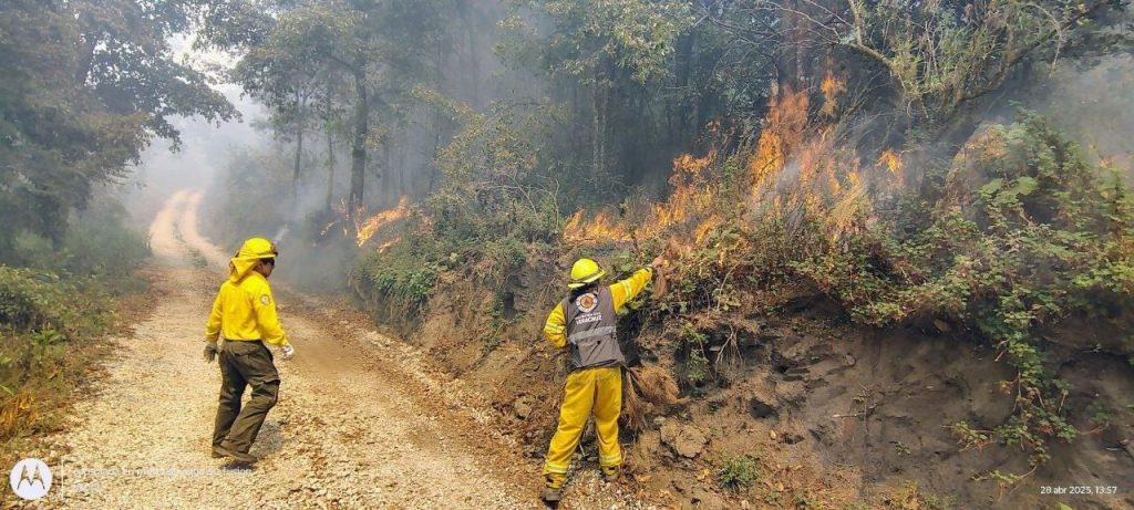 También colaboran brigadas especializadas en manejo de fuego capacitadas por la