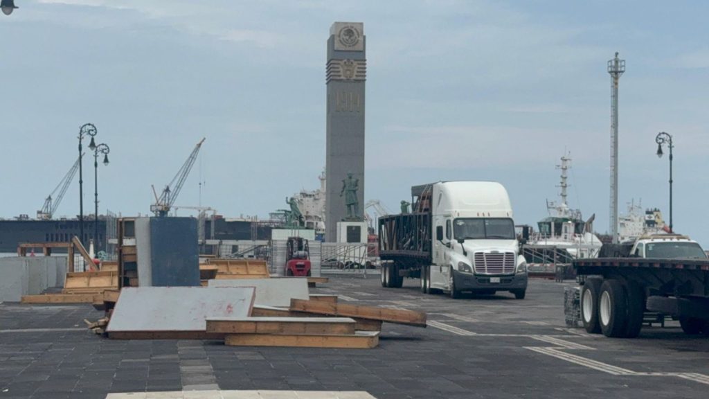 Veracruz, Ver. 24 de junio de 2025.- Debido al pronóstico de más lluvias en los próximos días, fue desmontado el escenario que serviría para los eventos masivos del Carnaval de Veracruz 2025 y que estaba ubicado en la macroplaza del malecón.