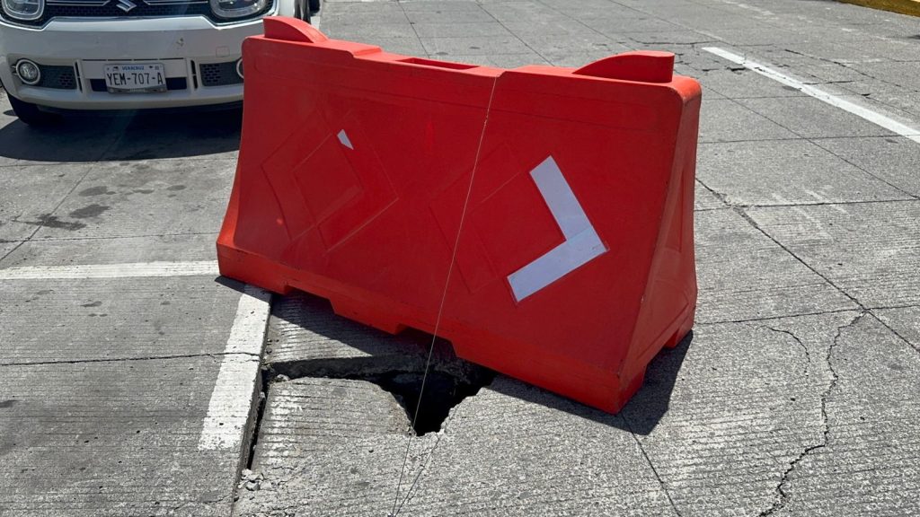 Veracruz, Ver., martes 8 de julio de 2025 — Un socavón se formó este martes en el Malecón de Veracruz, específicamente sobre la avenida Insurgentes Veracruzanos, a la altura de la Plaza de Artesanías. No presenta un diámetro considerable, pero alcanza varios metros de profundidad, fue detectada por automovilistas que circulaban por la zona.