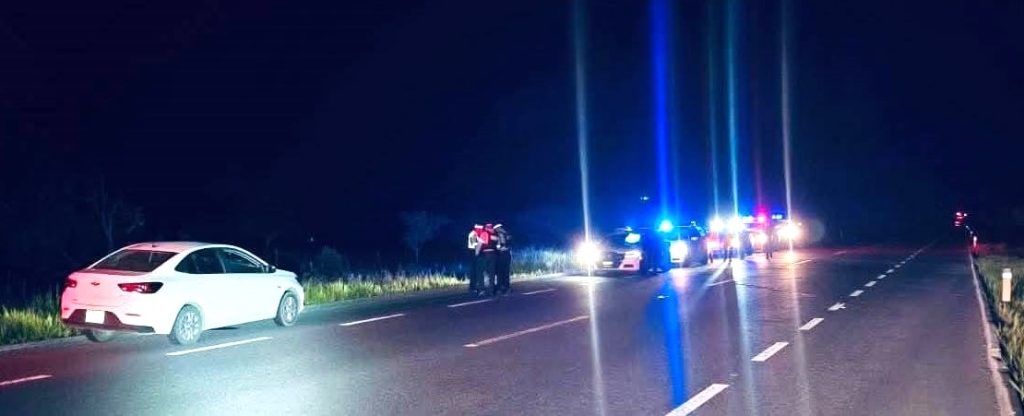 Cerca de la caseta de cobro de Naranjos, la GN localizó abandonado el auto Chevrolet Onix color blanco con impactos de arma de fuego en el parabrisas, los ocupantes bajaron y huyeron internándose en el monte.