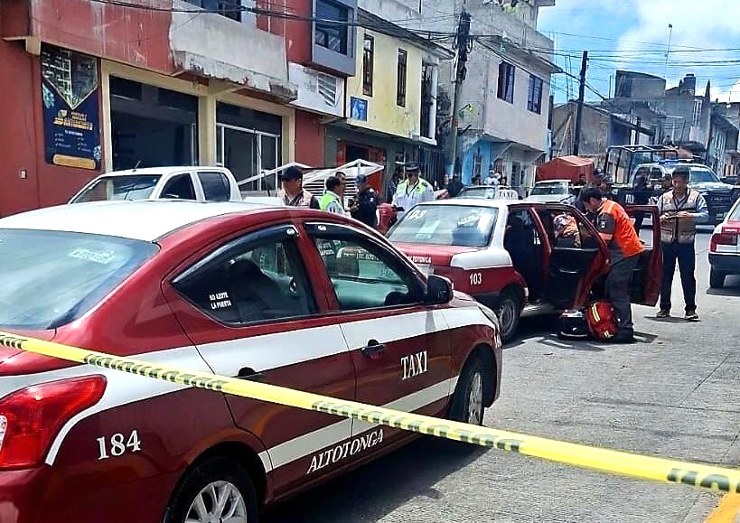 Un taxista identificado como Martín Sánchez fue asesinado a balazos en el centro de Altotonga, una pasajera de nombre María de Lourdes “N” resultó lesionada e ingresó de urgencia a un hospital.