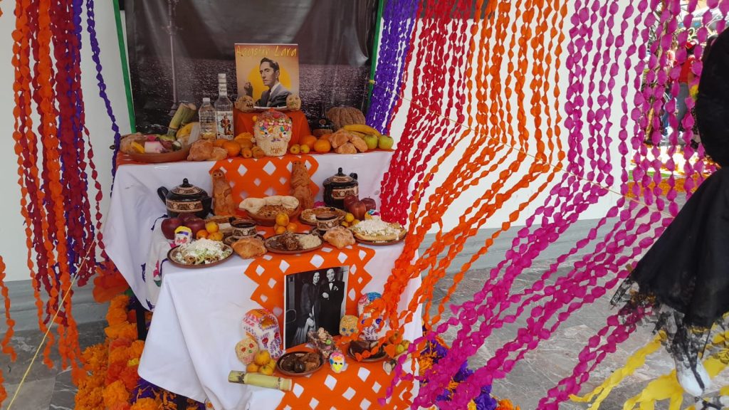 “Pues bueno, nosotros en este caso tratamos de apegarnos a las tradiciones como el dulce típico como la calabaza y el dulce de copite, la fruta de temporada, la mandarina, el tejocote, la caña, la manzana, el plátano, las calaveritas de dulce y sobre todo la comida preferida, en este caso, por el ‘Flaco de Oro’ que era el arroz a la tumba, el mole, la comida típica tradicional jarocha como las picadas, las empanadas, los tacos dorados, los tamales y, bueno, no podía faltar su cigarrito y su ron o brandy”.
