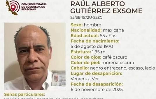 Susana Cruz. Veracruz, Ver.— 18 de noviembre de 2025.-Raúl Alberto Gutiérrez Exsome, de 55 años, fue localizado con vida el...