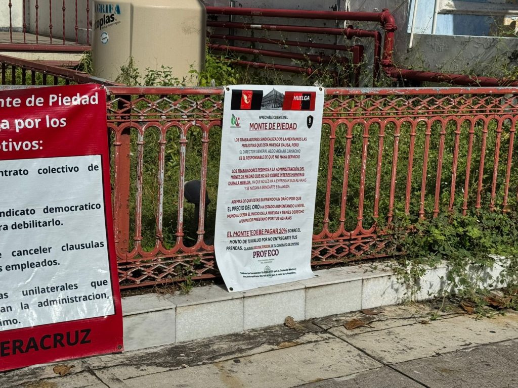 Veracruz, Ver. 29 de noviembre de 2025.- Continúa la huelga en el Monte de Piedad, ya que no se han logrado acuerdo entre los trabajadores y la empresa.