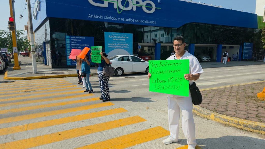 Se manifiesta personal de salud por cambios en el pago del bono de despensa. La movilización se desarrolla en el cruce de la avenida 20 de Noviembre y la calle Alacio Pérez, donde los manifestantes exigen la liberación total de sus recursos.
