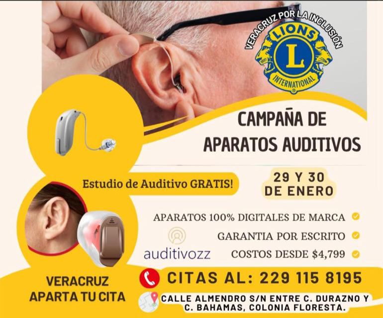 Veracruz, Ver. Con el objetivo de facilitar el acceso a la salud, se llevará a cabo en Veracruz una campaña de aparatos auditivos con cupo limitado, en la que se ofrecerán estudios auditivos gratuitos y dispositivos a bajo costo para personas con problemas de audición. La jornada es organizada por el Club de Leones, como parte de sus acciones sociales enfocadas a la inclusión, y se realizará los días 29 y 30 de enero.