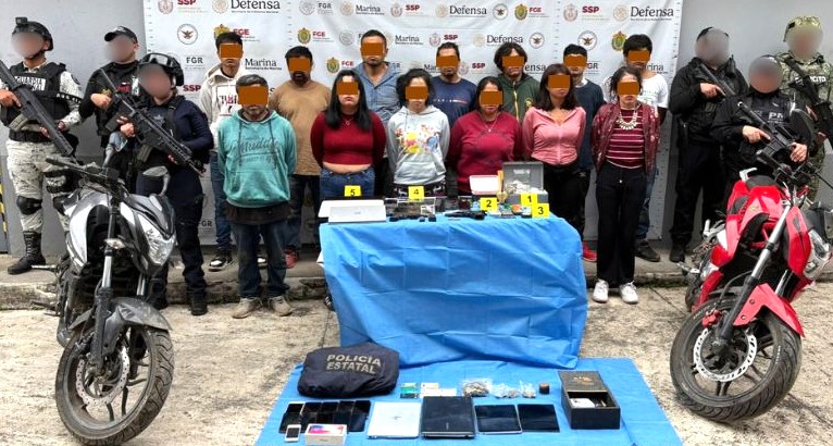 Los trece detenidos y los objetos asegurados quedaron a disposición de la FGE para que se continúe con las investigaciones del caso.