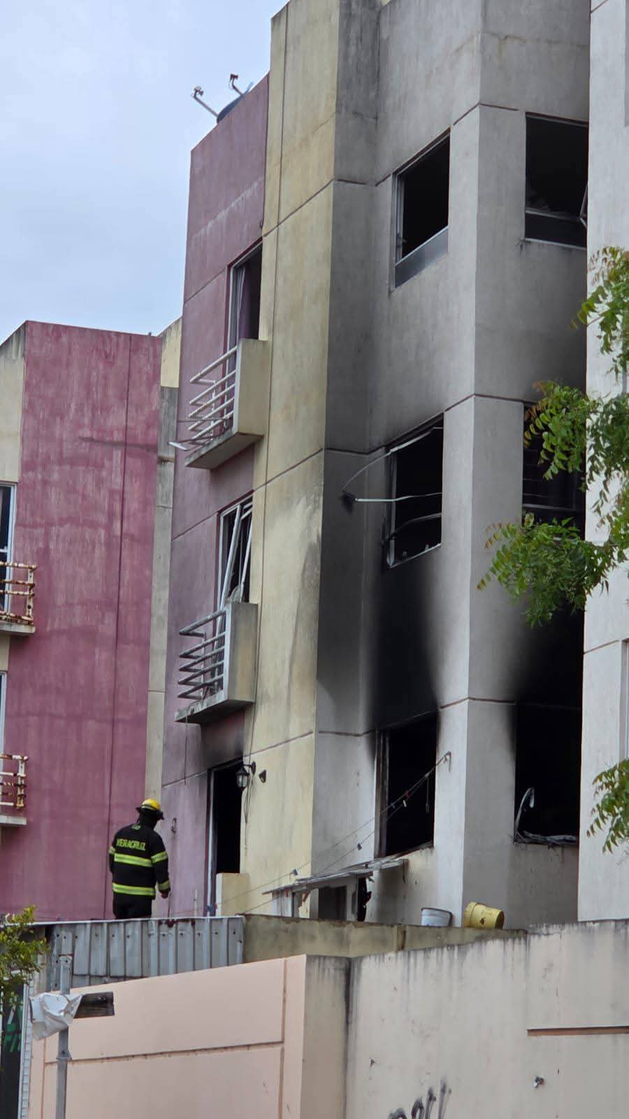 En minutos arribaron Bomberos de Veracruz, con Protección Civil, para el auxilio de las víctimas y combatir el fuego que permanecía activo en el sitio donde ocurrió la explosión por probable acumulación de gas L.P.