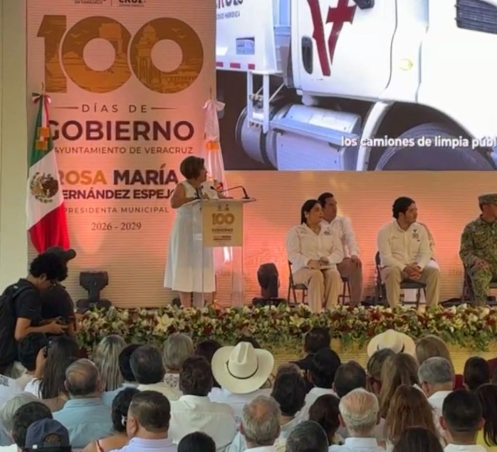 Veracruz, Ver. 16 de abril de 2026.-La alcaldesa de Veracruz, Rosa María Hernández Espejo, presentó el informe correspondiente a sus primeros 100 días de gobierno, en el que destacó acciones en materia de limpieza urbana, bacheo, pavimentación e impulso a la inversión a través del área de Desarrollo Económico y Portuario.